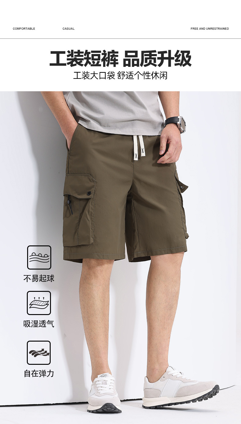 Cross-border new breathable work shorts for men, summer thin trendy brand loose straight casual capre pants for men