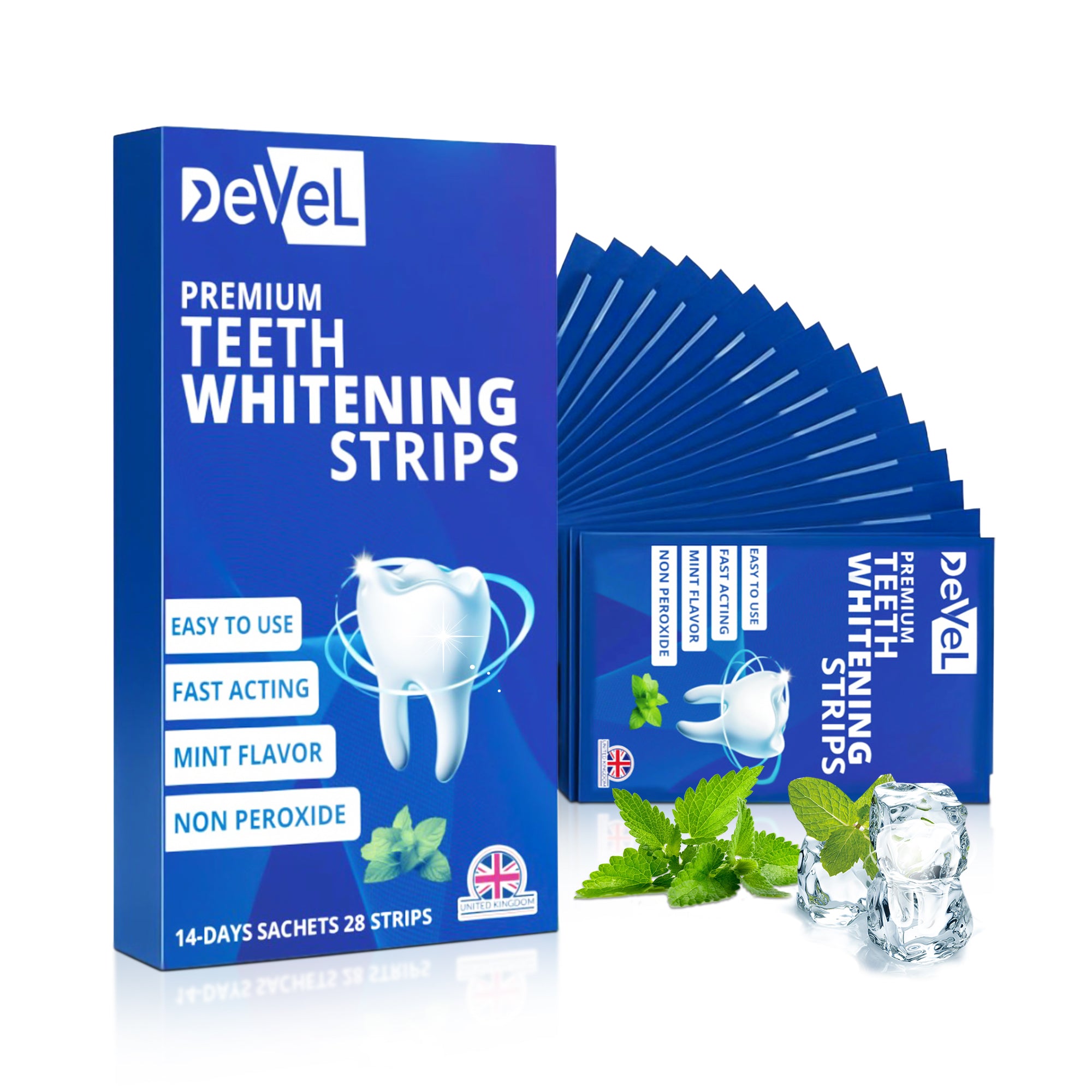 DEVEL- Premium Teeth Whitening Strips (28 Strips/14 days Treatments) – Non-Peroxide, Fast-Acting, Mint Flavour – Gentle At-Home 28 Kits for Sensitive Teeth & Enamel Safe
